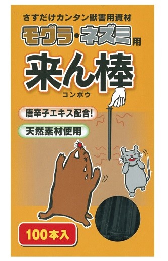 激辛唐辛子エキス 来ん棒 100本 日本製 もぐら モグラ撃退機 ネズミ駆除 モグラ駆除 モグラ捕獲器 モグラ退治