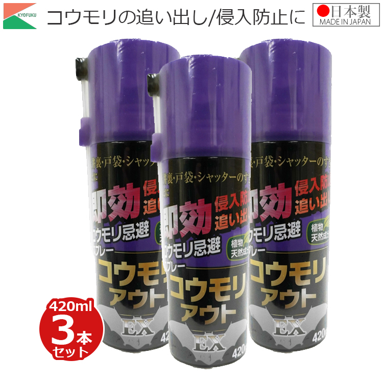 忌避剤 コウモリ スプレー 420ml 3本セット 日本製 コウモリアウトEX スプレータイプ 対策 侵入防止 忌避 屋根裏 共福