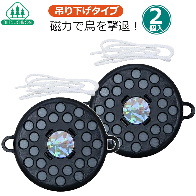 ミツギロン 鳥よけ 鳥避け 鳥去ーるブラック 2個入り 防鳥 忌避 ベランダ 吊り下げ 吊るす 鳥害 対策 撃退 磁石 磁力 ハト カラス