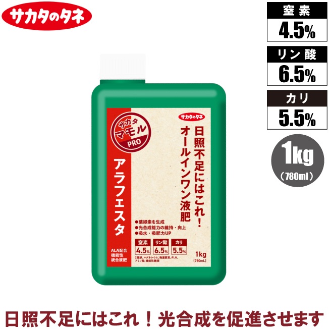 液肥 肥料 サカタのタネ アラフェスタ 1kg 液体肥料 液肥料 カリウム 野菜 葉面散布 リン酸 窒素 2価鉄 果物 光合成 日照不足 ALA配合機能性統合液肥