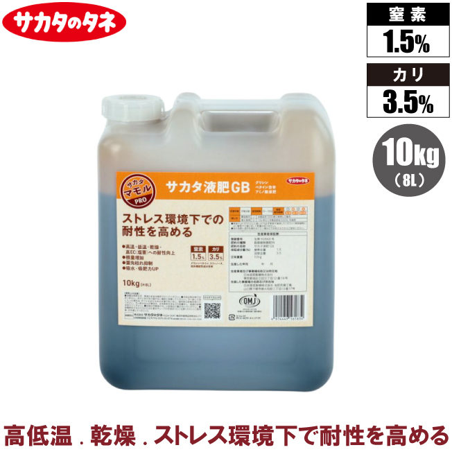 液肥 有機 サカタのタネ サカタ液肥GB 10kg 有機肥料 液体肥料 液肥料 カリウム 野菜 jas 葉面散布 灌水施 窒素 果物 乾燥期 グリシンベタイン含有アミノ酸液肥