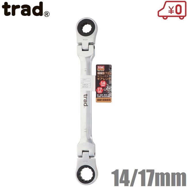 trad ラチェットレンチ 首振り72角両頭ギアレンチ 14mm 17mm TRG-1417F フレックスレンチ レンチ スパナ 工具