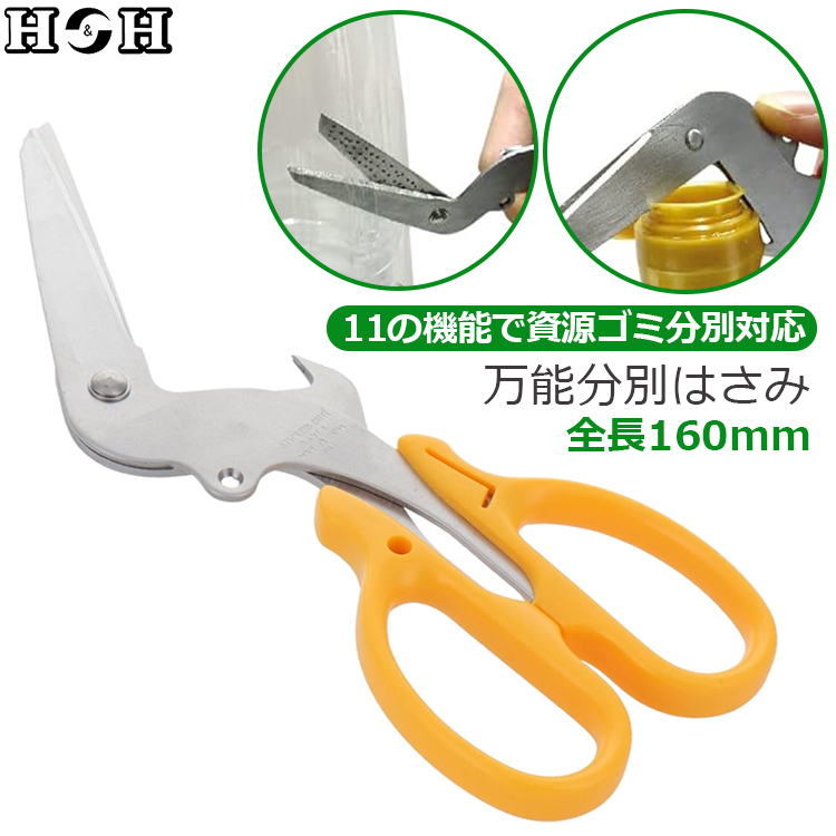 H&H 万能ハサミ 11way 分別ばさみ リサイクルはさみ RS-01 万能はさみ 万能バサミ ゴミ分別用鋏 シール?がし ガス抜き キャップ外し ペットボトル切り