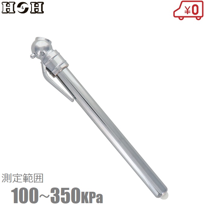 H&H タイヤゲージ 100〜350kPa シングルタイヤ用 米式バルブ バイク 小型自動車用 エアーツール エアツール 工具