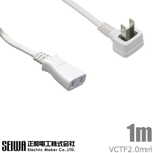 SEIWA 高ワット 延長コード L型プラグ 1m T21PKL 延長タップ 電源タップ エアコン用 パネルヒーター用 ポータブル電源 ポタ電 電化製品用