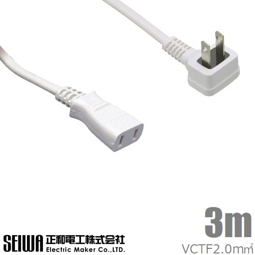 SEIWA 高ワット 延長コード L型プラグ 3m T23PKL 延長タップ 電源タップ エアコン用 パネルヒーター用 ポータブル電源 ポタ電 電化製品用