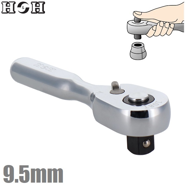 H&H 108ギア ラチェットハンドル 3/8 9.5mm ソケットハンドル ショート 短い 軽量 小型 ラチェットレンチ ソケットレンチ HCR-30S