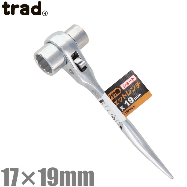 trad 両口 ラチェットレンチ シノ付 ショートタイプ 17mm×19mm TRW-1719S 両口レンチ 鳶 足場工具 型枠工具 スパナ