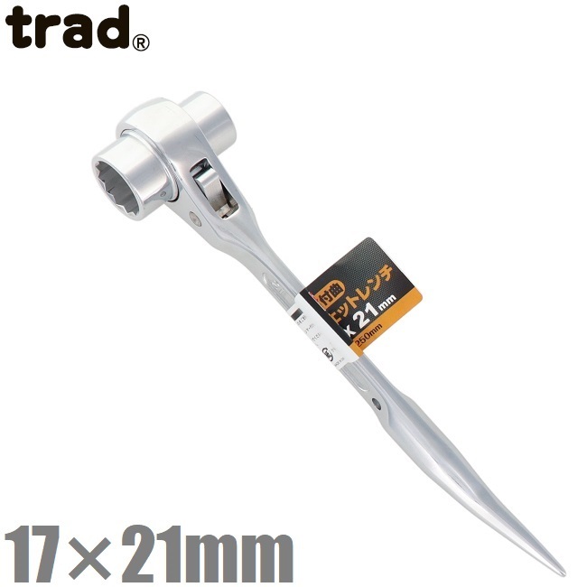 trad 両口 ラチェットレンチ シノ付 17mm×21mm TRW-1721 両口レンチ 鳶 足場工具 型枠工具 スパナ