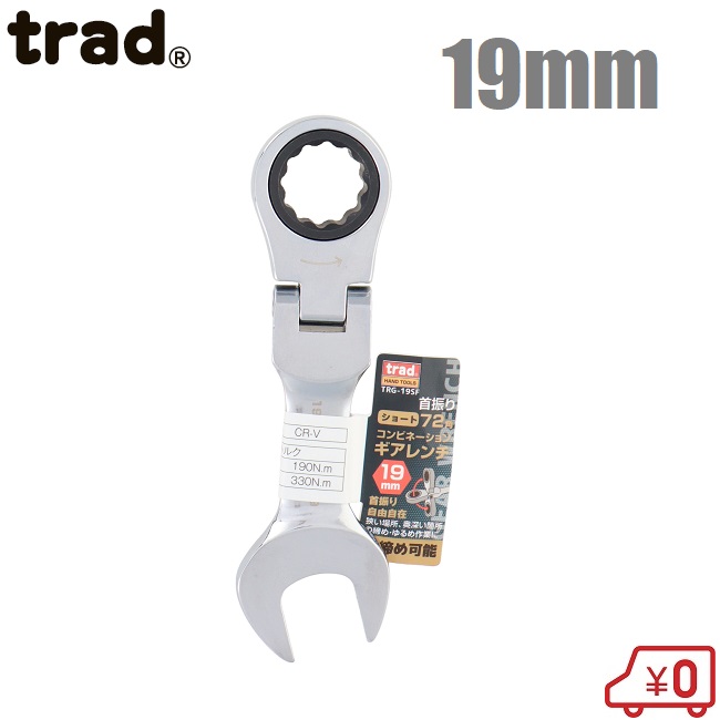 trad 首振り ラチェットレンチ 19mm 72角/本締め ショートレンチ ラチェットスパナ TRG-19SF ギアレンチ コンビレンチ フレックレンチ
