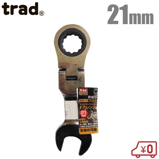 trad 首振り ラチェットレンチ 21mm 72角/本締め ショートレンチ ラチェットスパナ TRG-21SF ギアレンチ コンビレンチ フレックレンチ