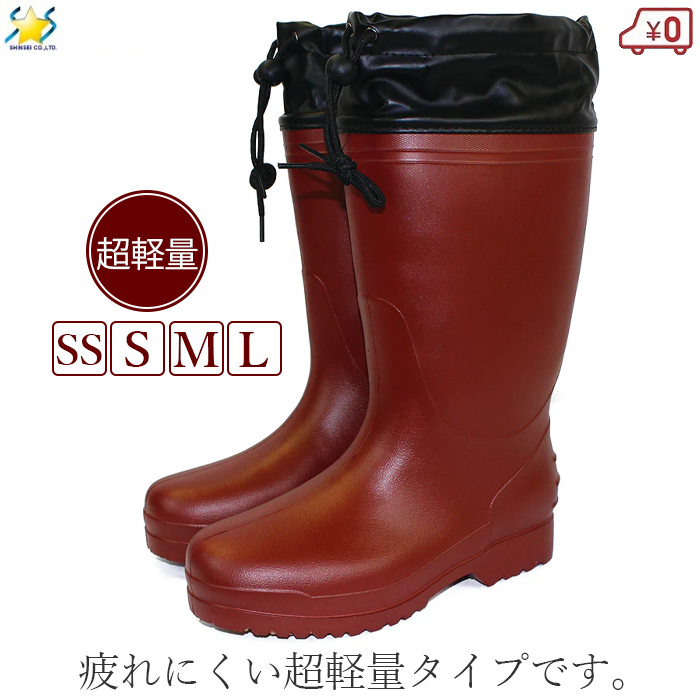 シンセイ 長靴 軽量 超軽量 長ぐつ レインブーツ ガーデニングブーツ アウトドア レディース 女性 ワイン SS/S/M/L フード付き 園芸 雨 雪