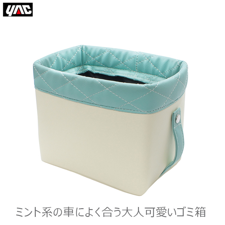 YAC 車用 ゴミ箱 おしゃれ 可愛い ごみ箱 ブルー ホワイト 小型 車内 車載 コンパクト ダストボックス 小物入れ PF381