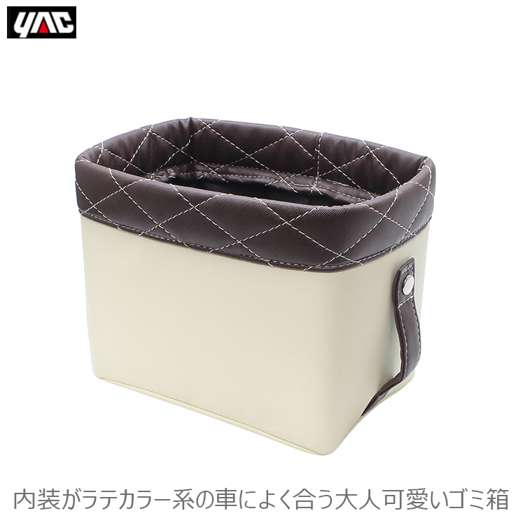 YAC 車用 ゴミ箱 おしゃれ 可愛い ごみ箱 ブラウン 茶色 ホワイト 白 小型 車内 車載 コンパクト ダストボックス 小物入れPF382