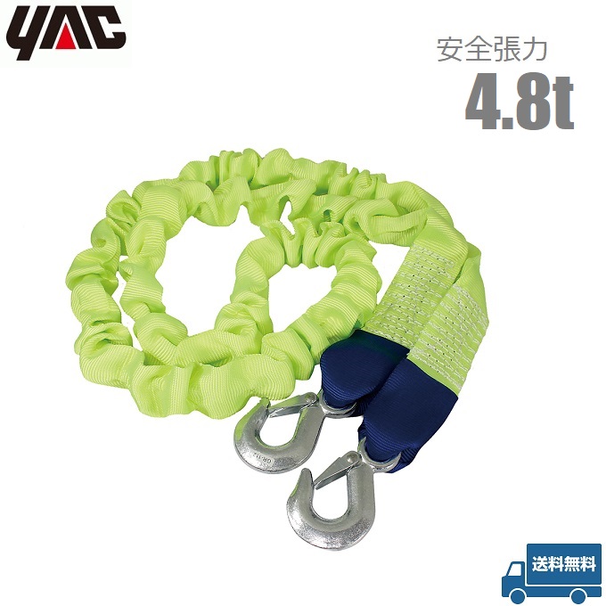 YAC 車 牽引ロープ 伸縮 4.8t ワンタッチフック付 GR114 4.8トン 車用牽引ロープ のびるけん引ロープ 車 スタック 脱出道具 緊急脱出