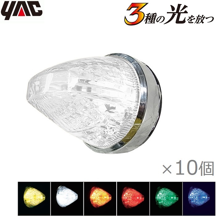 YAC トラック用 マーカーランプ 12V/24V 10個セット ファルコンマーカー LEDサイドマーカー ライン光 ダウンライト 黄色 赤色 オレンジ 緑色 青色