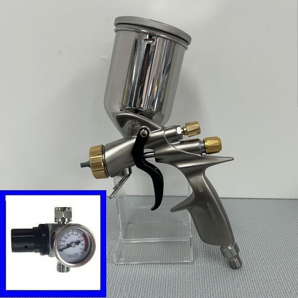 (数量限定)(K.V.M) 明治(meiji)スプレーガン FINER-FORCE B 塗料カップ4GF-U・手元圧力計付きセット 重力式 ノズル口径:1.6mm