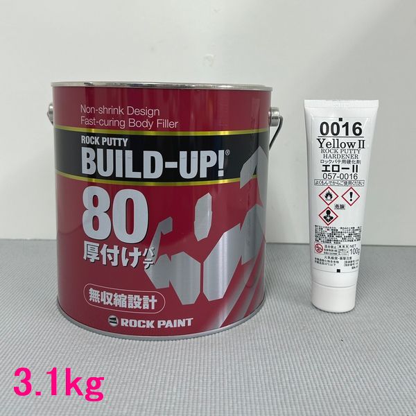 (数量限定)ロックペイント 057-0820 ロックパテ ビルドアップ80(厚付け用) 057-0016硬化剤付 3.1kgセット