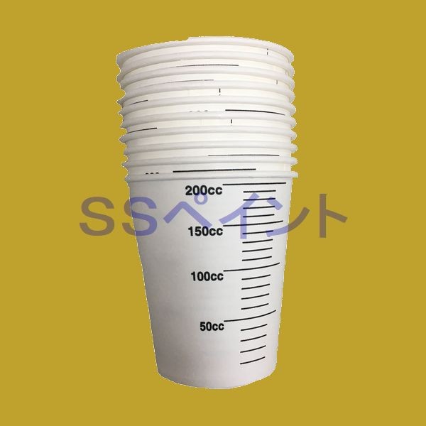 塗料調色専用の目盛付紙コップです。耐溶剤性で塗装障害や漏れがおきません。スタンド不要です。紙ゴミとして廃棄出来ます。