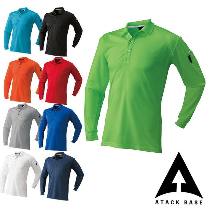 40015 ベンチレーション長袖ポロシャツ ATACK BASE アタックベース SS〜5L ポリエステル100% (メッシュ部分 ポリエステル85