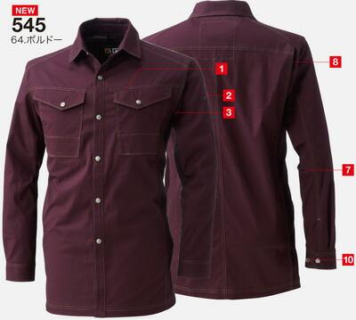 ストレッチ 作業服 545 長袖シャツ G.GTOUND 桑和(SOWA) 春夏 作業服 作業着 S〜6L 綿98%・ポリウレタン2%