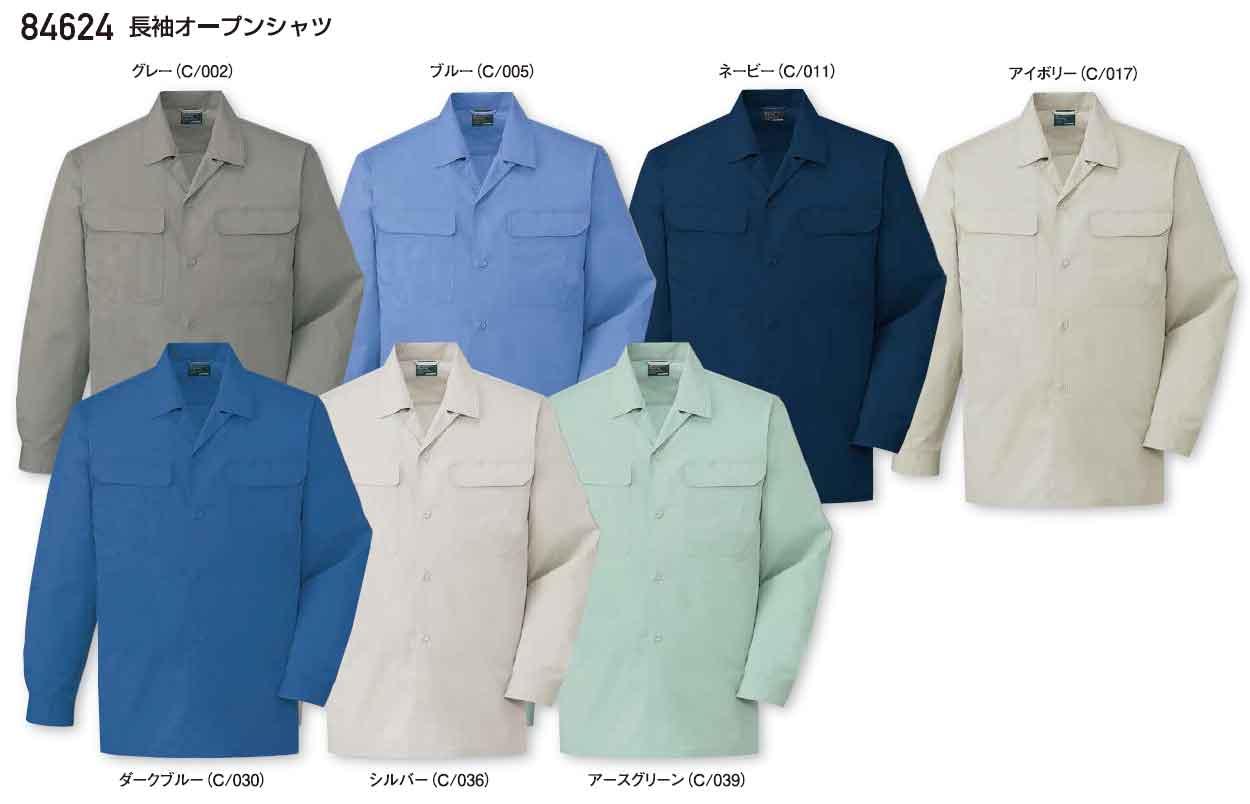 84624 長袖オープンシャツ(自重堂) S〜5L 綿100%