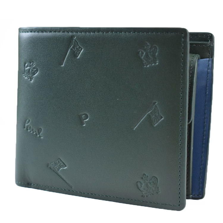 ピーエス ポールスミス 二つ折り 財布 メンズ ブランド PS Paul Smith PSドローイング かぶせ 専用箱付 グリーン 男性 紳士 本革