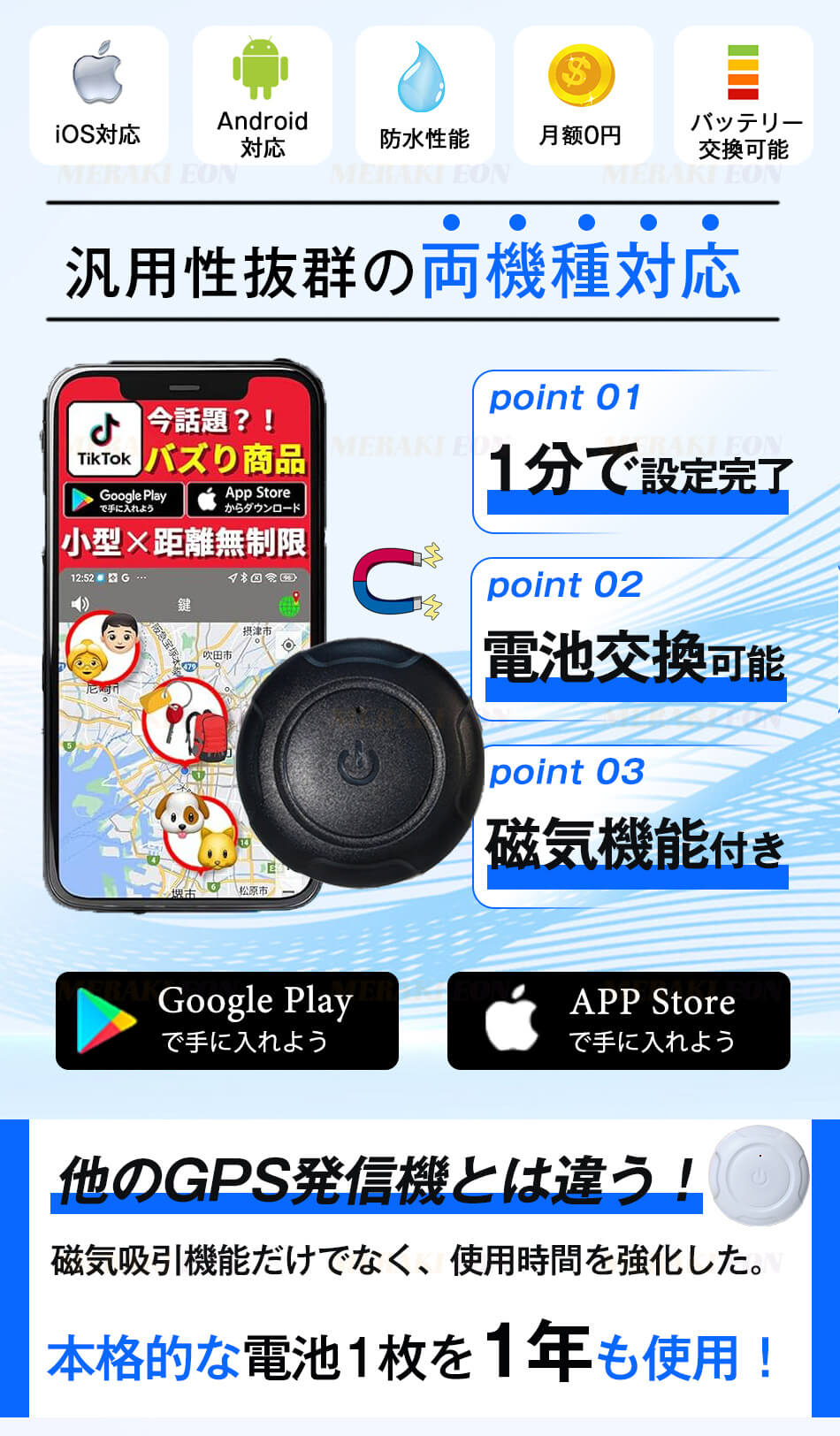 GPS発信機 トラッカー 車追跡 磁気機能 浮気調査 月額0円 位置検知 小型GPS Apple&Android共通 紛失防止タグ 履歴照会 バイク 自転車 超長時間駆動 防災