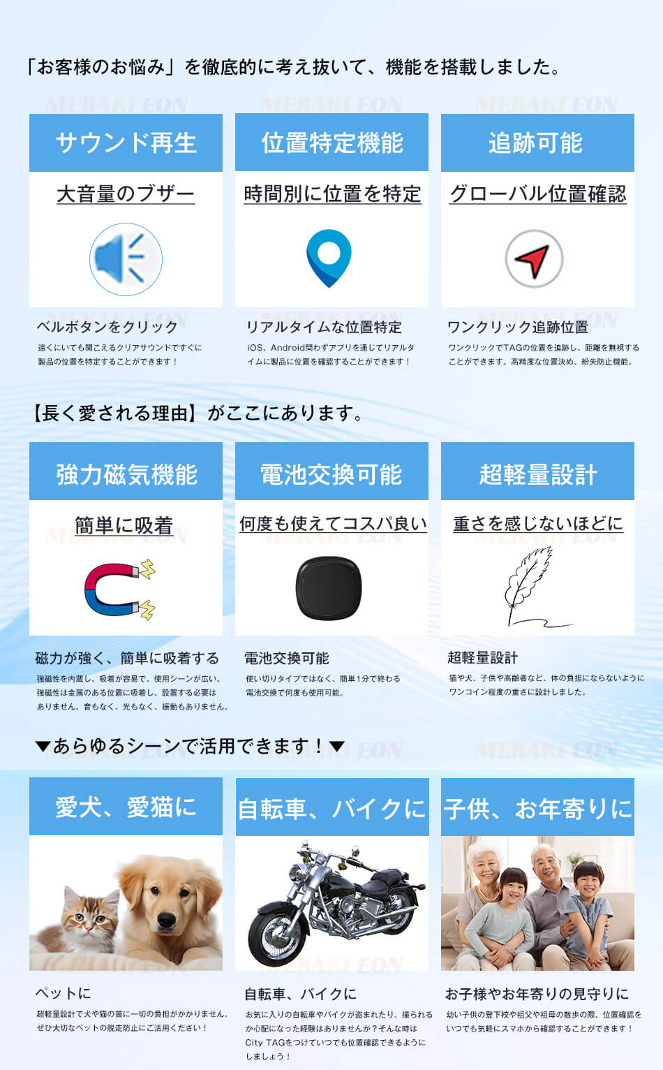 対象:自転車/老人/子供/リュック/荷物/鍵などの物品