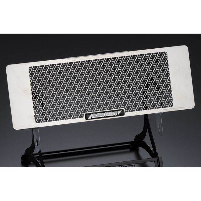 長年のレースシーンからのフィードバックにより完成されたステンレスハニカムメッシュコアガード。材質にはSUS304を#400研磨した、錆にくさとねばり強さを兼ね備えた高級ステンレスを採用。従来の板厚(0.5t)から、さらに重量感のある板厚(0.8t)へグレードUPしました!ラジエターの熱交換性を妨げずフロントタイヤの巻き上げる小石やゴミ、ライトめがけて飛んでくる昆虫、またサーキットにおいては路面に落ちているタイヤカスやフロントタイヤからスピンオフされた細かいゴムの破片をタイヤ幅に合わせた中央部の細かいメッシュが確実にガード。両サイドの粗いメッシュは冷却効率とプロテクトという相反するテーマの両立を考慮され極限にまで広げられた開口率になっています。アルミやチタンの場合、厚みを増すことによりメッシュライン幅も太くせざるを得ないところ、このSUS304は従来(0.5t)のライン幅を保持しながらも強度も大幅に向上させることを可能にしました。これは、過酷なストリートユースにおいても長期にわたる耐久性を考慮したもので、あらゆる材料から走行テストを重ね吟味致しました。何より大切な事は新車時のコア形状をいつまでも保つこと。あなたの愛車のドレスアップと性能を維持する為のアイテムとして是非、装着をお勧めします。