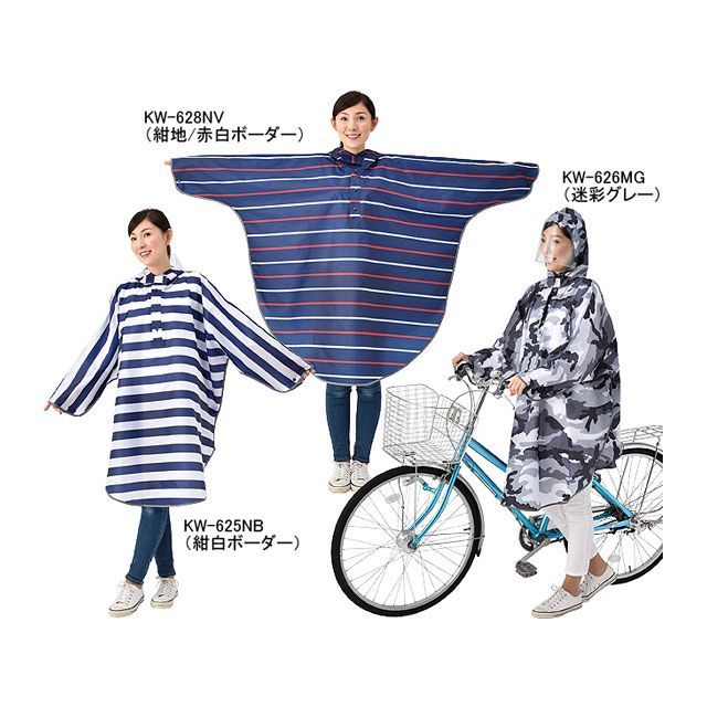 kawasumi ウェア チャリポンチョ(紺地/赤白ボーダー) 川住(自転車) 自転車