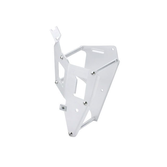 3mm厚のアルミプレートと直径12mmのアルミシャフトを使用。補強リブを設けたプレートとアルミシャフトにより横からの衝撃を受けやすいラジエターを強固に守る。