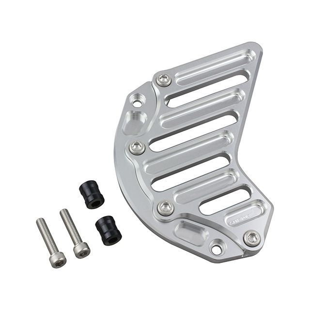 エンジン廻りのドレスアップパーツ、アルミ削り出しのスプロケットカバー本体は2ピース構造となっておりますので、カバーのみの取り外しが可能取り付けに必要なボルトはステンレス製で、耐腐食性に優れています。付属のアルミカラーも削り出しとなっております。