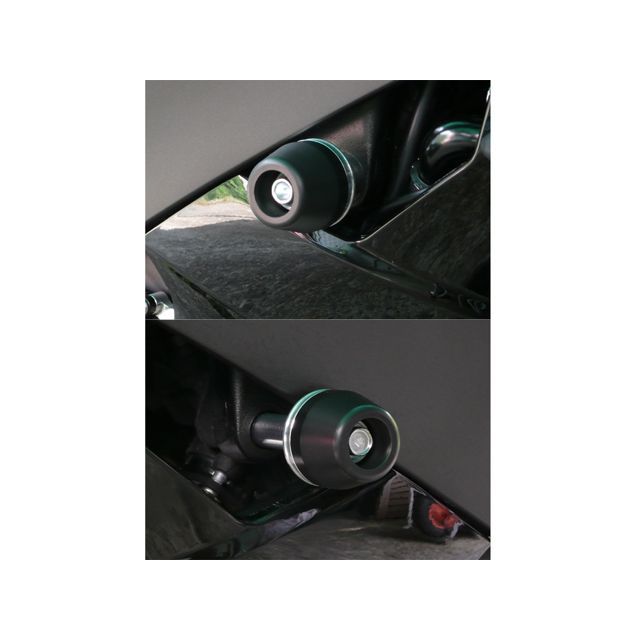 シリンダー前方、エンジンマウント部へ取り付けます。スライダー部分(ジュラコン(R))に関しては「ロゴ入」か「ロゴ無」かを選べますのでご希望の商品をお選びください。