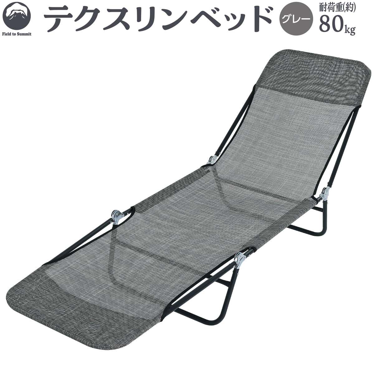 Field to Summit テクスリンベッ ド FTS0008GR リクライニング 5段 階 コット サマーベッド ビーチ ラウンジベッド 簡易 折りたたみ 森林浴 仮眠 レジャー 病院