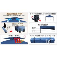 | サイズ | 本体(約):幅300x奥行300cm 収納時(約):幅22x奥行22x高さ122cm(付属品除く) 重量(約):16kg 高さ調節3段階(約):軒下高175/155/125cm フレーム(脚):30mm角/25mm角x板厚0.7mm フレーム(その他):10x20x板厚0.7mm |