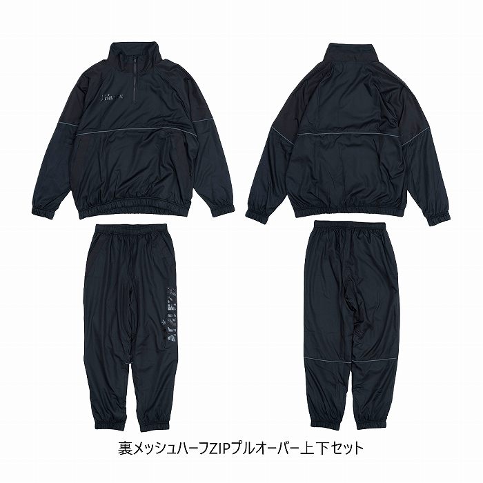 ・裏メッシュ付きハーフZIPプルオーバーシャツ、パンツ上下セット