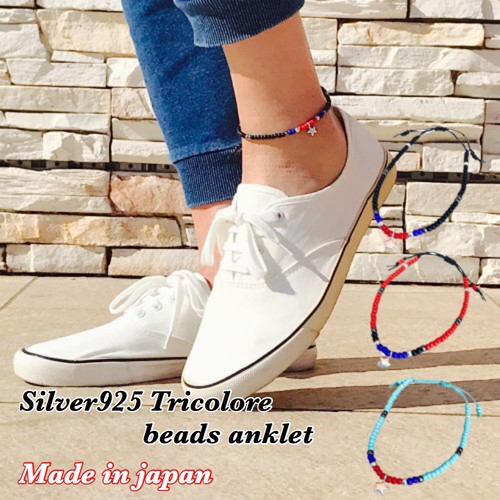 スターリングシルバー (SV925)星 ビーズ トリコカラー アンクレット