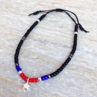 アンクレット メンズ シルバー925 シンプル 日本製 星 ビーズ トリコ ワックスコード ハンドメイド 大きいサイズ ブラック ターコイズ レッド