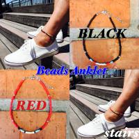 アンクレット メンズ シンプル メンズアンクレット ビーズ ペア レディースアンクレット シルバー チェーン レッド ブラック プレゼント ギフト