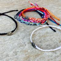 金具は国産のコンチョを使用しポリエステル素材のワックスコードで編みこんでいるのでつけっぱなしOK
