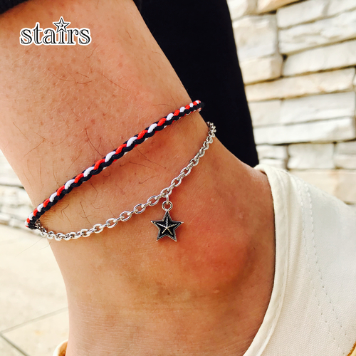 星のモチーフをチェーンとコードで繋いだ2連がお洒落なアンクレット