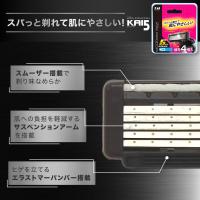 【サスペンションアームで肌負担に配慮】肌への負担を抑えてくれるサスペンションアーム付きで、肌に程よくフィット。商品サイズ (幅×奥行×高さ) :110mm×15mm×100mm、原産国:日本、材質:刃部:ステンレス刃物鋼、スムーザー水溶性樹脂、吸水性樹脂、樹脂部:ABS、TPE、PP(キャップ)