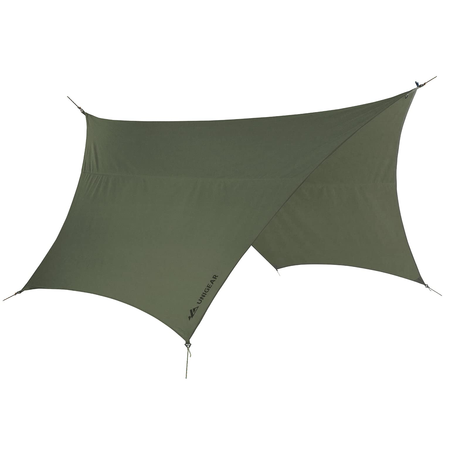 Unigea(420*410cm, グリーン)r ヘキサタープ tcタープ ポリコットン 5m延長ベルト付きテントとの取り組み可能 焚き火 遮光 遮熱