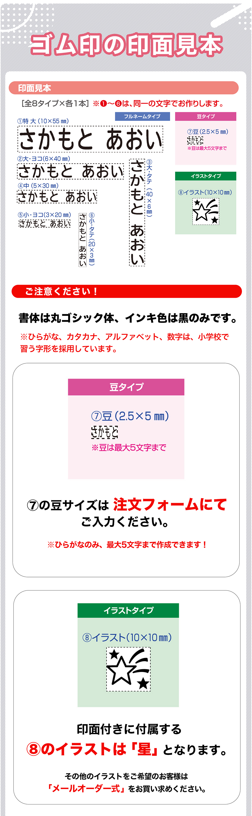 ※印面付きの場合、イラストタイプのイラストは「星のみ(X01)」となります。