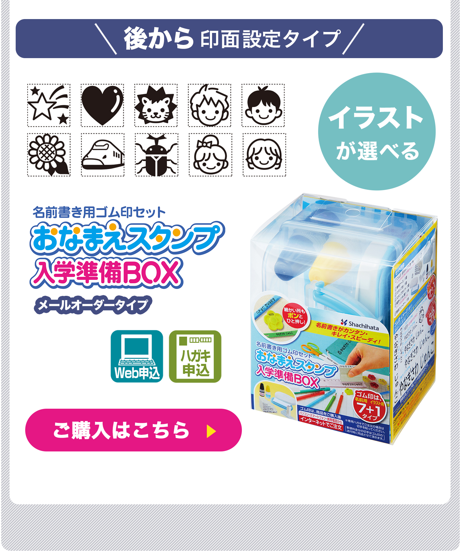 シヤチハタ製 お名前スタンプ 7サイズ ひらがな カタカナ 漢字 名前 はんこ 油性スタンプ台 おなまえ スタンプ セット 収納 入園準備 小学校 入学準備BOX