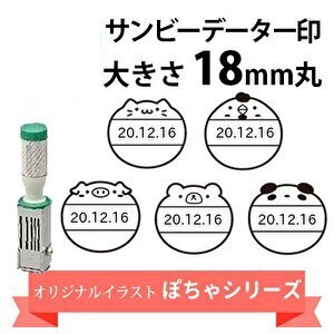 サンビー 日付印 ぽちゃシリーズ スタンプラボオリジナル 6号丸 18mm丸 別注品 テクノタッチデータ 日付スタンプ データ印 デート印 回転式 データネーム