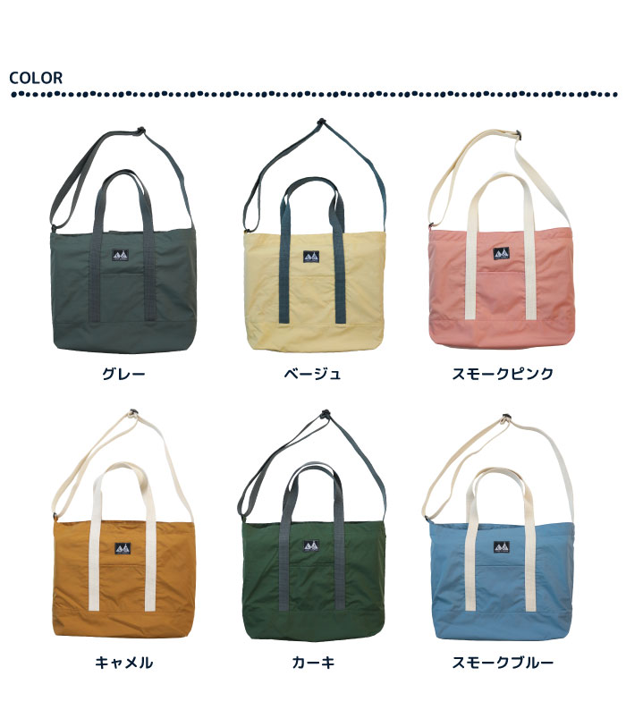 撥水加工のナイロン製素材で軽くて扱いやすく、トートでもショルダーでも使えて機能性もバッチリ。
