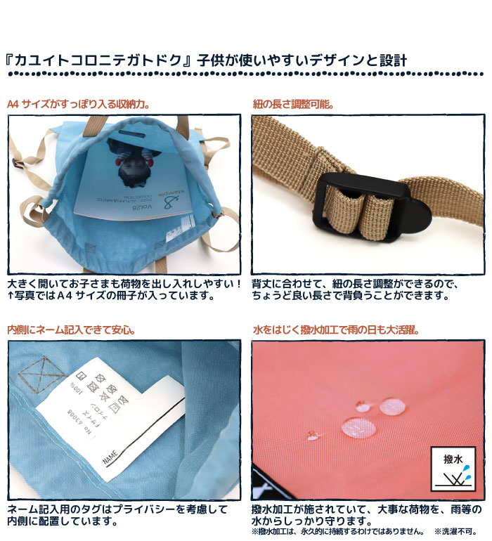 紐が変わって使いやすくなった肩紐も長さ調節が可能で、背丈に合わせることができ、ランドセルの上からも背負えます。