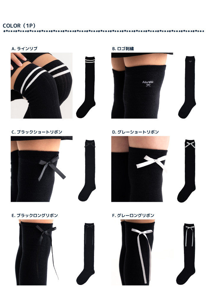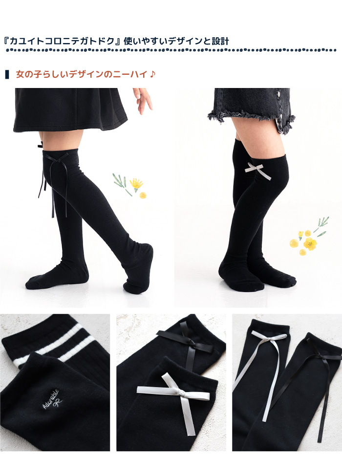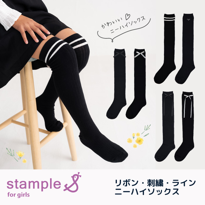 stample スタンプル リボン・刺繍・ライン ニーハイ ソックス 卒業式 入学式 フォーマル 発表会 女の子 通学 可愛い 70005
